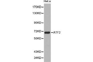 This gene encodes a transcription factor that is a member of the leucine zipper family of DNA binding proteins. The encoded protein has been identified as a moonlighting protein based on its ability to perform mechanistically distinct functions This protein binds to the cAMP-responsive element (CRE), an octameric palindrome. It forms a homodimer or a heterodimer with c-Jun and stimulates CRE-dependent transcription. This protein is also a histone acetyltransferase (HAT) that specifically acetylates histones H2B and H4 in vitro, thus it may represent a class of sequence-specific factors that activate transcription by direct effects on chromatin components. The encoded protein may also be involved in cell's DNA damage response independent of its role in transcriptional regulation. Several alternatively spliced transcript variants have been found for this gene,CRE-BP1,CREB-2,CREB2,HB16,TREB7,ATF2,Epigenetics & Nuclear Signaling,Transcription Factors,Signal Transduction,MAPK-JNK Signaling Pathway,MAPK-P38 Signaling Pathway,Immunology & Inflammation,B Cell Receptor Signaling Pathway,Toll-like Receptor Signaling Pathway,Cell Intrinsic Innate Immunity Signaling Pathway,TLR Signaling,ATF2