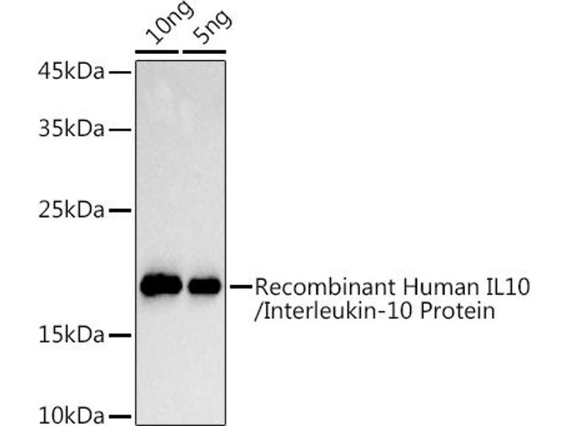 - Recombinant fusion protein containing a sequence corresponding to amino acids 19-178 of human IL10 (NP_000563.1).