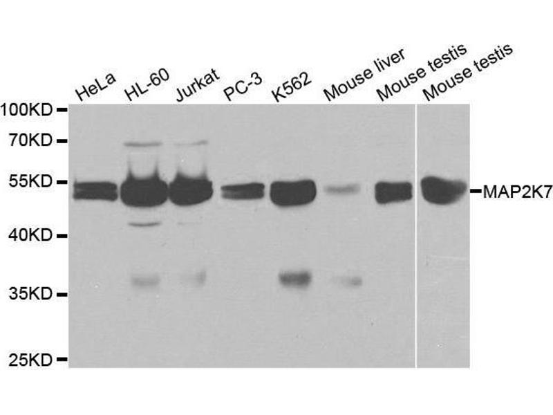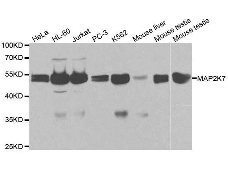 Der Kaninchen Polyklonal anti-MAP2K7 Antikörper (ABIN3023157) detektiert spezifisch MAP2K7 in WB und IF.