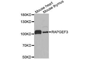 Guanine nucleotide exchange factor (GEF for RAP1A and RAP2A small GTPases that is activated by binding cAMP. Through simultaneous binding of PDE3B to RAPGEF3 and PIK3R6 is assembled in a signaling complex in which it activates the PI3K gamma complex and which is involved in angiogenesis. Plays a role in the modulation of the cAMP-induced dynamic control of endothelial barrier function through a pathway that is independent on Rho-mediated signaling. Required for the actin rearrangement at cell-cell junctions, such as stress fibers and junctional actin.,RAPGEF3,CAMP-GEFI,EPAC,EPAC1,HSU79275,bcm910,Signal Transduction,G protein signaling,G2/M DNA Damage Checkpoint,MAPK-Erk Signaling Pathway,Endocrine & Metabolism,Immunology & Inflammation,RAPGEF3