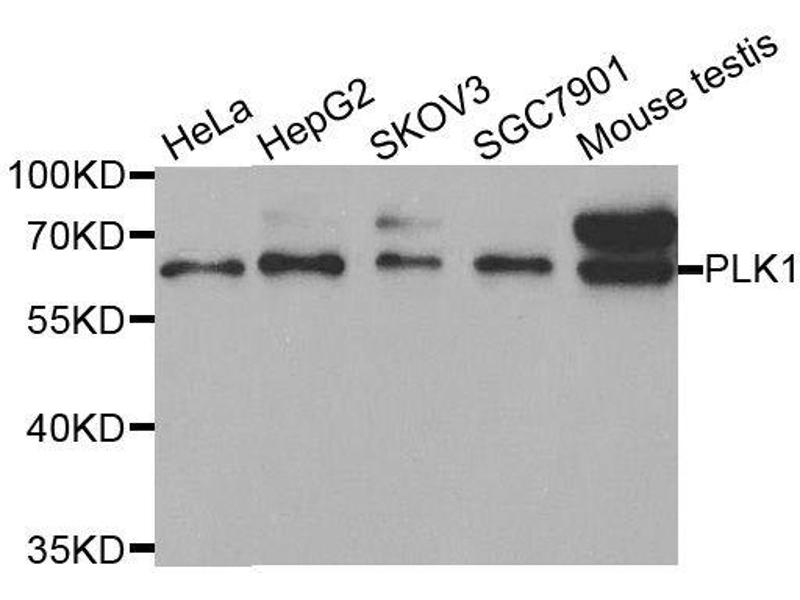 The Ser/Thr protein kinase encoded by this gene belongs to the CDC5/Polo subfamily. It is highly expressed during mitosis and elevated levels are found in many different types of cancer. Depletion of this protein in cancer cells dramatically inhibited cell proliferation and induced apoptosis, hence, it is a target for cancer therapy.,PLK1,PLK,STPK13,Epigenetics & Nuclear Signaling,Cancer,Signal Transduction,Kinase,Serine/threonine kinases,Cell Biology & Developmental Biology,Cell Cycle,Centrosome,G2/M DNA Damage Checkpoint,PLK1