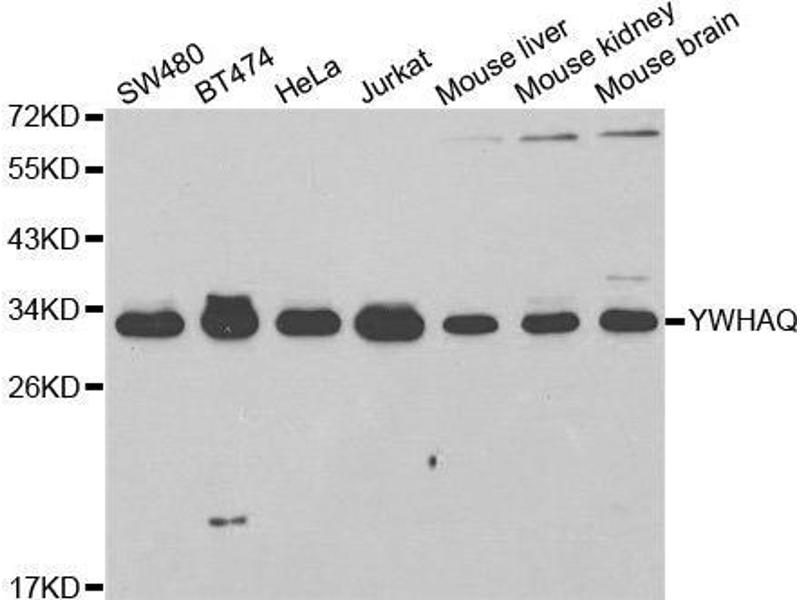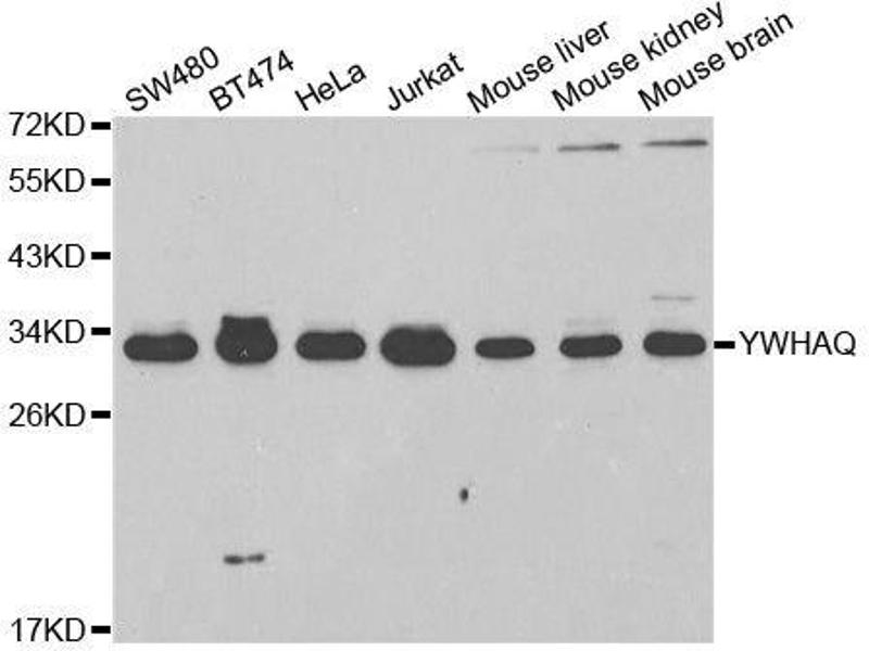 Alle 14-3-3 theta (YWHAQ) Antikörper anzeigenReaktivität