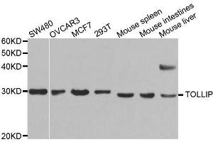 This gene encodes a ubiquitin-binding protein that interacts with several Toll-like receptor (TLR) signaling cascade components. The encoded protein regulates inflammatory signaling and is involved in interleukin-1 receptor trafficking and in the turnover of IL1R-associated kinase. Several transcript variants encoding different isoforms have been found for this gene.,TOLLIP,IL-1RAcPIP,Immunology & Inflammation,Cytokines,Interleukins,Toll-like Receptor Signaling Pathway,Cell Intrinsic Innate Immunity Signaling Pathway,TLR Signaling,TOLLIP