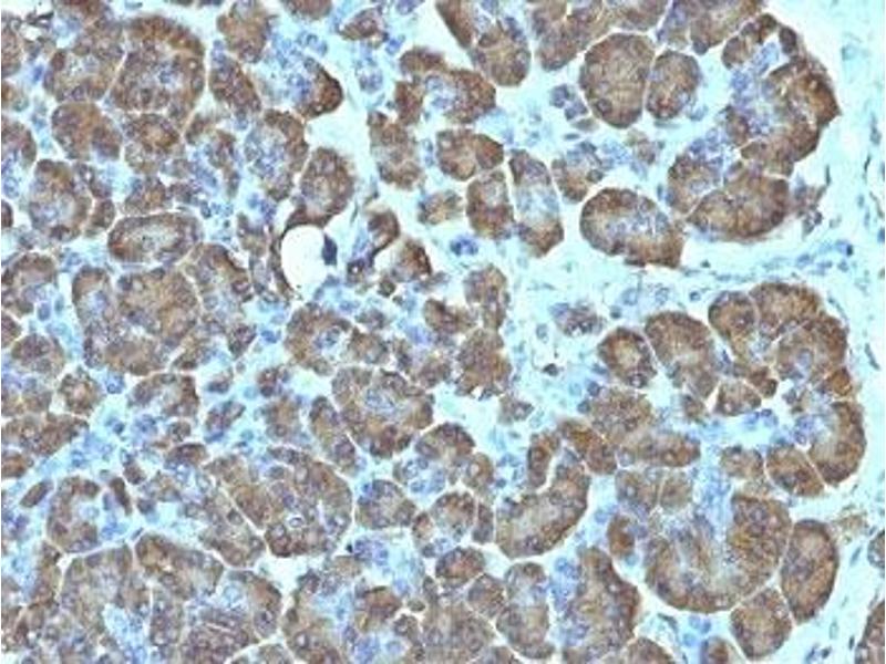 2. The prediluted format is supplied in a dropper bottle and is optimized for use in IHC. After epitope retrieval step (if required), drip mAb solution onto the tissue section and incubate at RT for 30 min.\. Immunofluorescence: 0.5-1 μg/mL,Western blot: 0.25-0.5 μg/mL,Immunohistochemistry (FFPE): 0.5-1 μg/mL for 30 min at RT (1),Prediluted format: incubate for 30 min at RT (2) -