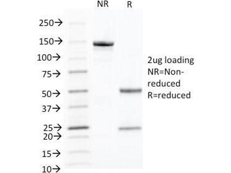 2. The prediluted format is supplied in a dropper bottle and is optimized for use in IHC. After epitope retrieval step (if required), drip mAb solution onto the tissue section and incubate at RT for 30 min.\. Flow Cytometry: 0.5-1 μg/million cells in 0.1ml,Immunofluorescence: 0.5-1 μg/mL,Immunohistochemistry (FFPE): 0.1-0.2 μg/mL for 30 min at RT (1),Prediluted format : incubate for 30 min at RT (2) -