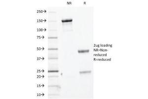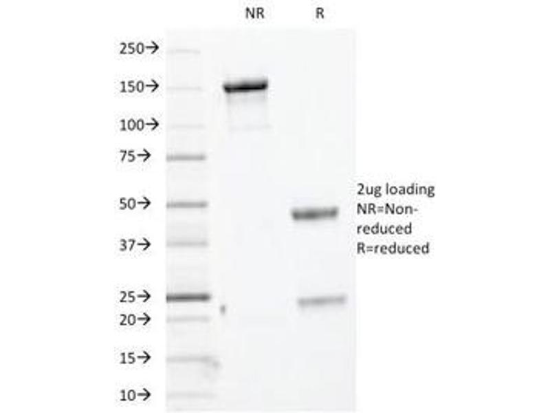 2. The prediluted format is supplied in a dropper bottle and is optimized for use in IHC. After epitope retrieval step (if required), drip mAb solution onto the tissue section and incubate at RT for 30 min.\. ELISA (For coating order Ab without BSA)Flow Cytometry: 0.5-1 μg/million cells in 0.1ml,Immunofluorescence: 1-2 μg/mL,Western blot: 0.5-1 μg/mL,Immunohistochemistry (FFPE): 0.25-0.5 μg/mL for 30 min at RT (1),Prediluted format: incubate for 30 min at RT (2) -