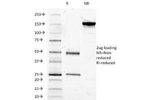 This mAb recognizes the peptide core of gastric mucin M1 (recently identified as Mucin 5AC). Its epitope is located in the N-terminal cysteine rich part of the peptide core of MUC5AC, which is heavily glycosylated. Its epitope is destroyed by beta-mercaptoethanol but not by periodate treatment. mAb 2-11M1 reacts with the protein backbone exclusively, it only reacts with fully deglycosylated MUC5AC. Therefore, the material under test should also be fully deglycosylated. This can be achieved with standard periodate oxidation method. The success of the deglycosylation can be checked with routine PAS (Periodic Acid Shiff) staining. After deglycosylation, the preparation should no longer be stainable with PAS reagent. Only then 2-11M1 will react should MUC5AC be present. This mucin is present in primary ovarian mucinous cancer but usually absent in colorectal adenocarcinoma, thus showing an expression pattern opposite to MUC2. Together with a panel of antibodies, Anti-MUC5AC may be useful for differential identification of primary mucinous ovarian tumors from colon adenocarcinoma metastatic to the ovary. MUC5AC antibodies may also be useful for identification of intestinal metaplasia as well as in the identification of pancreatic carcinoma and pre-cancerous changes vs. normal pancreas.