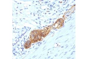 2. The prediluted format is supplied in a dropper bottle and is optimized for use in IHC. After epitope retrieval step (if required), drip mAb solution onto the tissue section and incubate at RT for 30 min.\. Immunofluorescence: 1-2 μg/mL,Immunohistochemistry (FFPE): 1-2 μg/mL for 30 minutes at RT (1),Prediluted format: incubate for 30 min at RT (2) -