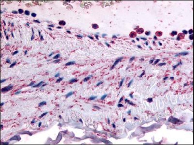 Immunohistochemistry on paraffin sections (14 μg/mL). Antigen retrieval: Steam slides in 0.01 M sodium citrate buffer, pH 6.0, at 99-100C for 20 min. Remove from heat and let stand at room temperature in buffer for 20 min. Rinse in 1xTBS with Tween (TBST) for 1 min. at room temperature. Other applications not tested. Optimal dilutions are dependent on conditions and should be determined by the user.