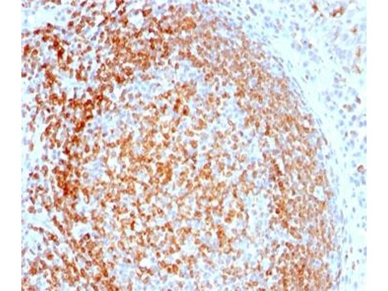 1. Staining of formalin-fixed tissues requires boiling tissue sections in 10 mM citrate buffer, pH 6.0, for 10-20 min followed by cooling at RT for 20 minutes.