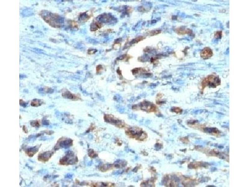 1. Staining of formalin-fixed tissues requires boiling tissue sections in 10 mM Citrate Buffer, pH 6.0, for 10-20 min followed by cooling at RT for 20 minutes.