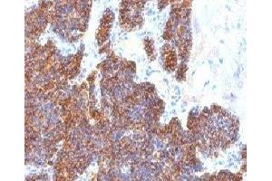 2. The prediluted format is supplied in a dropper bottle and is optimized for use in IHC. After epitope retrieval step (if required), drip mAb solution onto the tissue section and incubate at RT for 30 min.\. Flow Cytometry: 0.5-1 μg/million cells in 0.1ml,Immunofluorescence: 0.5-1 μg/mL,Immunohistochemistry (FFPE): 0.5-1 μg/mL for 30 min at RT (1),Prediluted format: incubate for 30 min at RT (2) -