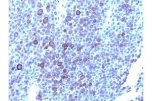 2. The prediluted format is supplied in a dropper bottle and is optimized for use in IHC. After epitope retrieval step (if required), drip mAb solution onto the tissue section and incubate at RT for 30 min.\. Flow Cytometry: 0.5-1 μg/million cells in 0.1ml,Immunofluorescence: 0.5-1 μg/mL,Immunohistochemistry (FFPE): 0.5-1 μg/mL for 30 min at RT (1),Prediluted format : incubate for 30 min at RT (2) -