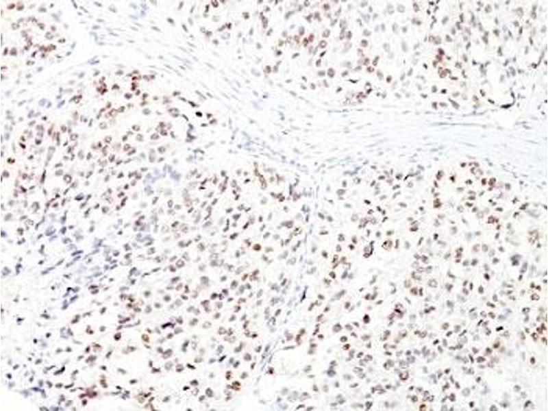 2. The prediluted format is supplied in a dropper bottle and is optimized for use in IHC. After epitope retrieval step (if required), drip mAb solution onto the tissue section and incubate at RT for 30 min.\. Flow Cytometry: 0.5-1 μg/million cells in 0.1ml,Immunofluorescence: 0.5-1 μg/mL,Immunohistochemistry (FFPE): 0.5-1 μg/mL for 30 min at RT (1),Prediluted format : incubate for 30 min at RT (2) -