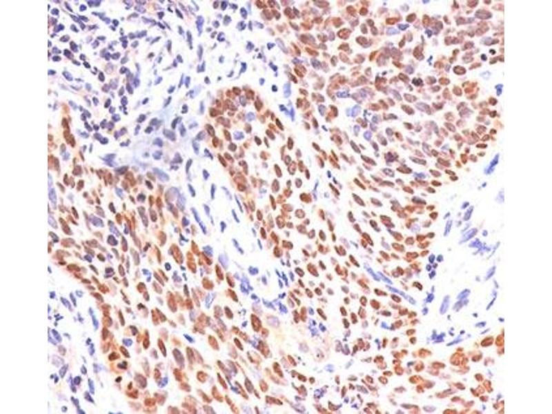 - Amino acids ENNAQTQFSEPQY (aa 5-17) of human p40 / p63 delta were used as the immunogen for this antibody.