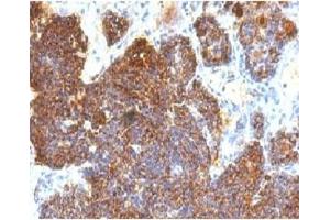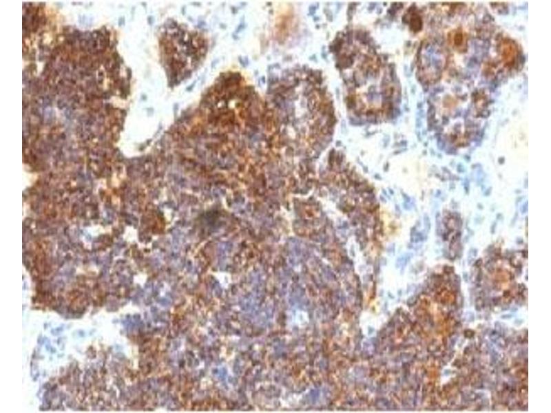 2. The prediluted format is supplied in a dropper bottle and is optimized for use in IHC. After epitope retrieval step (if required), drip mAb solution onto the tissue section and incubate at RT for 30 min.\. Immunofluorescence: 0.5-1 μg/mL,Immunohistochemistry (FFPE): 0.5-1 μg/mL for 30 min at RT (1),Prediluted format: incubate for 30 min at RT (2) -