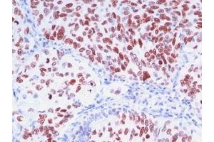 2. The prediluted format is supplied in a dropper bottle and is optimized for use in IHC. After epitope retrieval step (if required), drip mAb solution onto the tissue section and incubate at RT for 30 min.\. Flow Cytometry: 0.5-1 μg/million cells in 0.1ml,Immunofluorescence: 0.5-1 μg/mL,Immunohistochemistry (FFPE): 0.5-1 μg/mL for 30 min at RT (1),Prediluted format: incubate for 30 min at RT (2) -