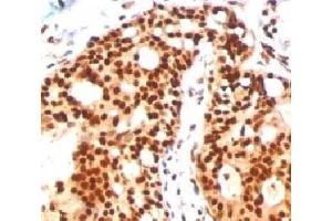 1. Staining of formalin-fixed tissues requires boiling tissue sections in 10 mM citrate buffer, pH 6.0, for 10-20 min followed by cooling at RT for 20 minutes.