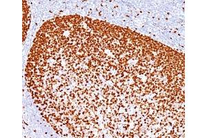 1. Staining of formalin-fixed tissues requires boiling tissue sections in 10 mM citrate buffer, pH 6.0, for 10-20 min followed by cooling at RT for 20 minutes.