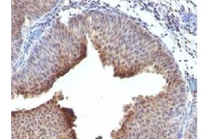 1. Staining of formalin/paraffin tissues is enhanced by digestion of tissue sections with pepsin at 1 mg/mL Tris-HCl, pH 2.0 for 10-15 min at RT.