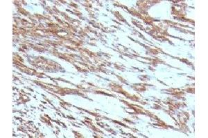 - This antibody recognizes actin of skeletal, cardiac, and smooth muscle cells. It is not reactive with other mesenchymal cells except for myoepithelium. Actin can be resolved on the basis of its isoelectric points into three distinctive components: alpha, beta, and gamma in order of increasing isoelectric point. Anti-muscle specific actin recognizes alpha and gamma isotypes of all muscle groups. Non-muscle cells such as vascular endothelial cells and connective tissues are non-reactive. Also, neoplastic cells of non-muscle-derived tissue such as carcinomas, melanomas, and lymphomas are negative. It stains tumors of smooth muscle (leiomyomas and leiomyosarcomas) as well as skeletal muscle (rhabdomyomas and rhabdomyosarcomas).