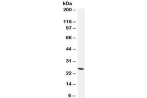 - This antibody specifically reacts with a protein of 20-30 kDa, identified as UchL1 (Ubiquitin carboxyl-terminal hydrolase-1), or PGP9.5. Studies using UchL1 antibody have shown that expression is related to tumor progression, with high expression correlating with poor prognosis, making the protein a potentially useful marker for pancreatic and invasive colorectal cancer. A mutation in gene is believed to cause a form of Parkinson's disease.