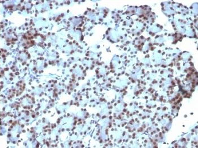 2. The prediluted format is supplied in a dropper bottle and is optimized for use in IHC. After epitope retrieval step (if required), drip mAb solution onto the tissue section and incubate at RT for 30 min.\. Flow Cytometry: 0.5-1 μg/million cells in 0.1ml,Immunofluorescence: 0.5-1 μg/mL,Western blot: 0.5-1 μg/mL,Immunohistochemistry (FFPE): 0.5-1 μg/mL for 30 min at RT (1),Prediluted format: incubate for 30 min at RT (2) -