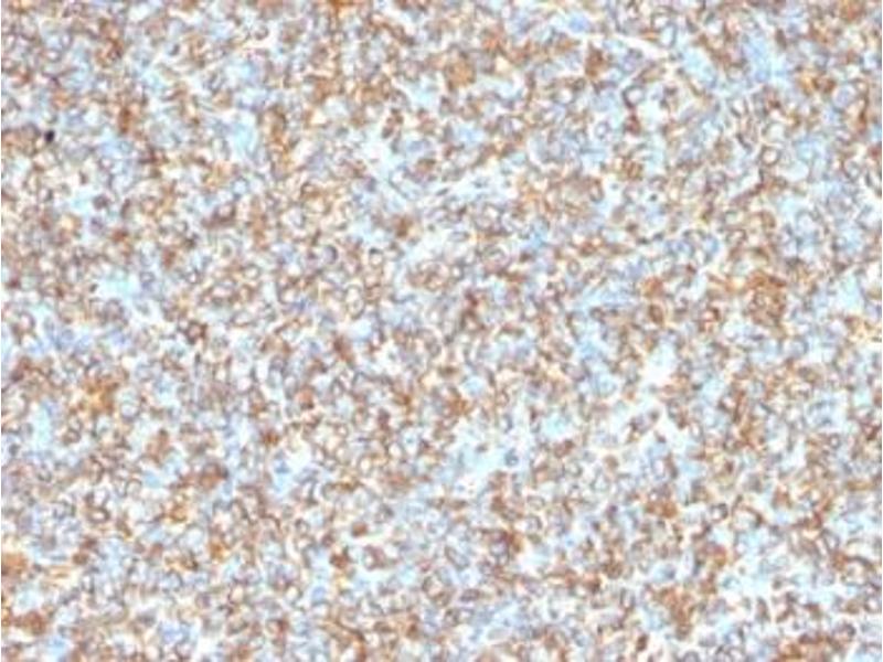 2. The prediluted format is supplied in a dropper bottle and is optimized for use in IHC. After epitope retrieval step (if required), drip mAb solution onto the tissue section and incubate at RT for 30 min.\. Flow Cytometry: 0.5-1 μg/million cells in 0.1ml,Immunofluorescence: 1-2 μg/mL,Western blot: 0.25-0.5 μg/mL,Immunohistochemistry (FFPE): 0.25-0.5 μg/mL for 30 min at RT (1),Prediluted format: incubate for 30 min at RT (2)