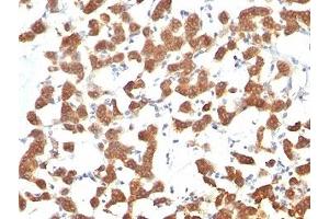 2. The prediluted format is supplied in a dropper bottle and is optimized for use in IHC. After epitope retrieval step (if required), drip mAb solution onto the tissue section and incubate at RT for 30 min.\. Western blot: 1-2 μg/mL, Flow Cytometry: 0.5-1 μg/million cells in 0.1ml,Immunofluorescence: 1-2 μg/mL,Immunohistochemistry (FFPE): 0.5-1 μg/mL for 30 min at RT (1),Prediluted format : incubate for 30 min at RT (2) -