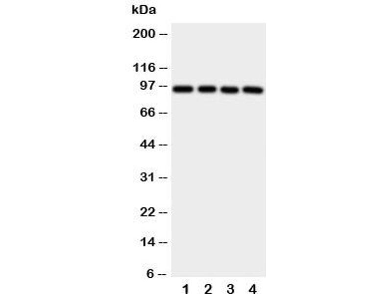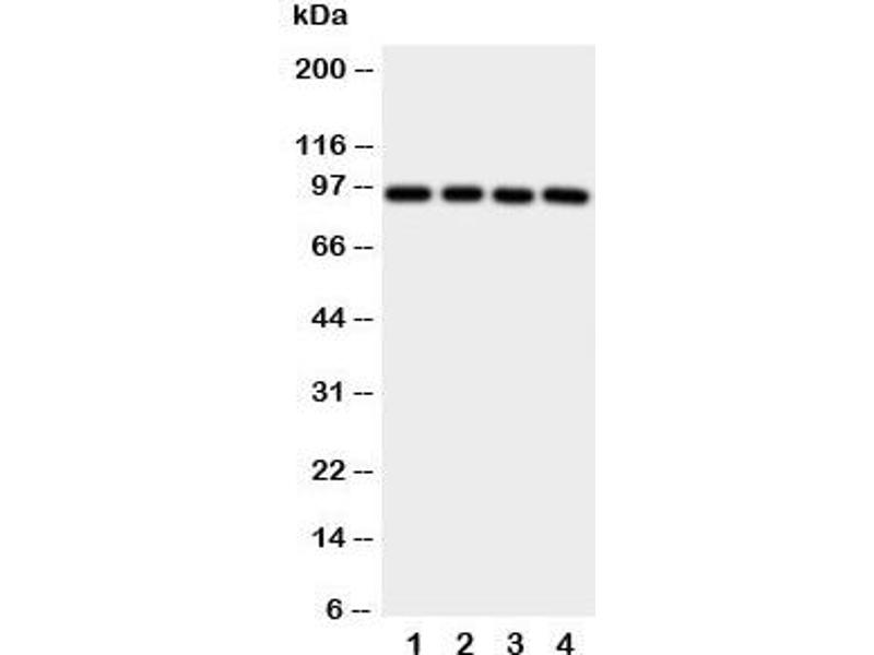 Der Kaninchen Polyklonal anti-Aryl Hydrocarbon Receptor Antikörper (ABIN3030027) detektiert spezifisch Aryl Hydrocarbon Receptor in WB.