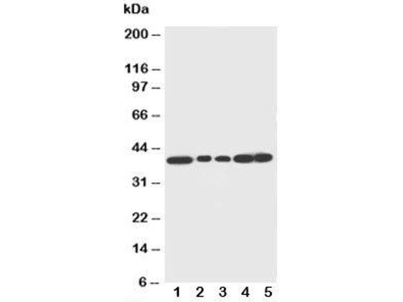 An amino acid sequence from the C-terminus of human Decorin (TFRCVYVRSAIQLGNYK) was used as the immunogen for this Decorin antibody