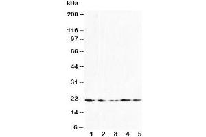The stated application concentrations are suggested starting amounts. Titration of the FGF10 antibody may be required due to differences in protocols and secondary/substrate sensitivity.\. Western blot: 0.5-1 μg/mL