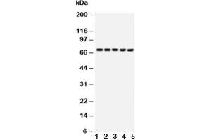 The stated application concentrations are suggested starting points. Titration of the HSP70 antibody may be required due to differences in protocols and secondary/substrate sensitivity.\. Western blot: 0.5-1 μg/mL,IHC (Paraffin): 0.5-1 μg/mL,IHC (Frozen): 0.5-1 μg/mL,Immunocytochemistry: 0.5-1 μg/mL