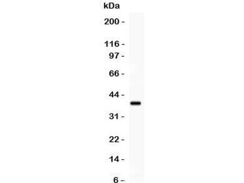 The stated application concentrations are suggested starting amounts. Titration of the HOXA11 antibody may be required due to differences in protocols and secondary/substrate sensitivity.\. Western blot: 0.5-1 μg/mL,FACS: 1-3 μg/10^6 cells