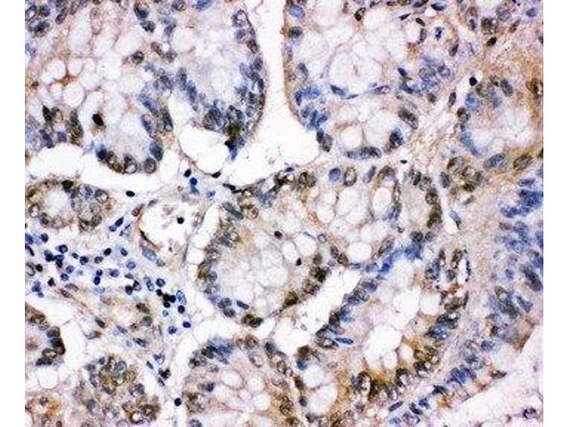 An amino acid sequence from the C-terminus of human MCM5 (EIQHRMQRKVLYRLK) was used as the immunogen for this MCM5 antibody (100% homologous in human, mouse and rat).
