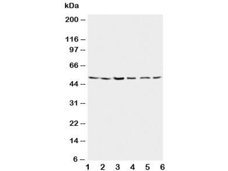 An amino acid sequence from the N-terminus of human Presenilin 2(EDGENTAQWRSQE) was used as the immunogen for this Presenilin 2 antibody.