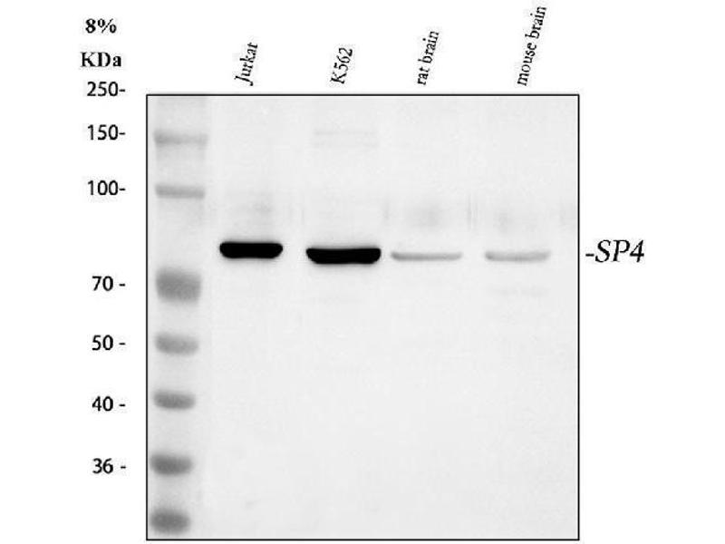 - Anti-Transcription factor Sp4 Antibody (ABIN3043013). Tested in WB applications. This antibody reacts with Human, Mouse, Rat. This is a premium antibody that guarantees superior quality, high affinity, and strong signals with minimal background in Western blot applications.