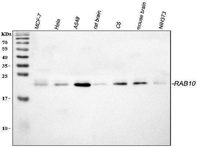 - Anti-RAB10 Antibody (ABIN3043448). Tested in WB applications. This antibody reacts with Human, Mouse, Rat. This is a premium antibody that guarantees superior quality, high affinity, and strong signals with minimal background in Western blot applications.