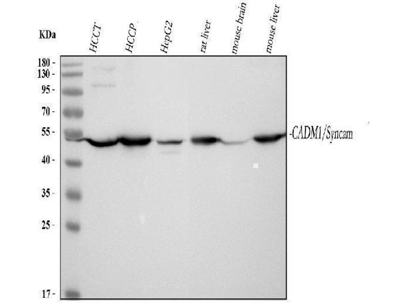 - Anti-SynCAM/CADM1 Antibody (ABIN3043770). Tested in Flow Cytometry, WB applications. This antibody reacts with Human, Mouse, Rat. This is a premium antibody that guarantees superior quality, high affinity, and strong signals with minimal background in Western blot applications.