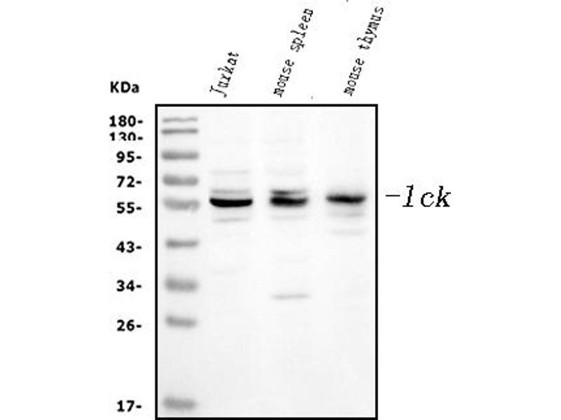 - Anti-Lck Antibody (ABIN3043870). Tested in Flow Cytometry, IF, IHC, IHC-F, ICC, WB applications. This antibody reacts with Human, Mouse, Rat. This is a premium antibody that guarantees superior quality, high affinity, and strong signals with minimal background in Western blot applications.
