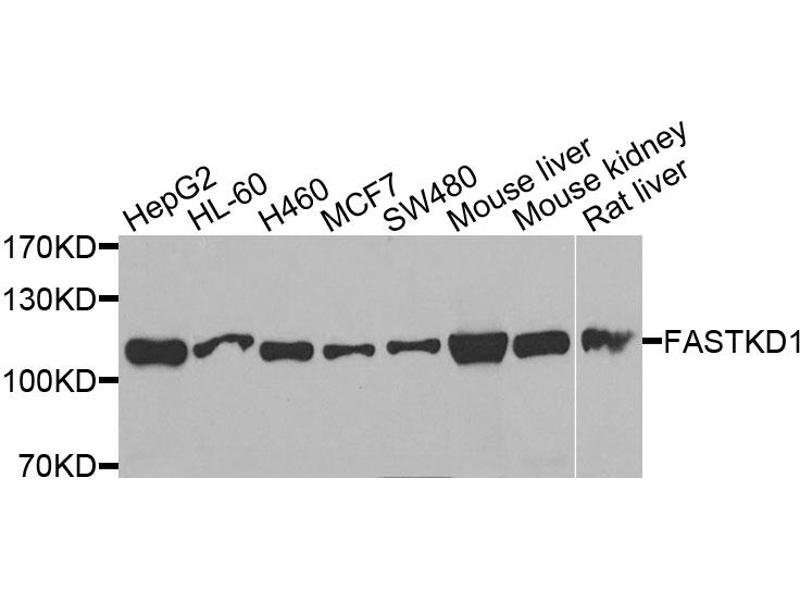 Der Kaninchen Polyklonal anti-FASTKD1 Antikörper wird verwendet zum Nachweis von FASTKD1 in Proben von Human, Maus und Ratte. Er wurde validiert für WB und IHC.