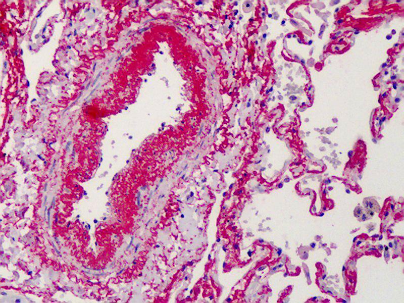 - Recognizes human Elastin. Crossreactivity: < 0.1 % with human Collagen I, II, III, IV, V, human Fibronectin, or rat Elastin by radioimmunoassay.