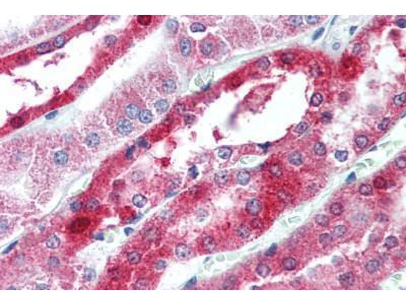 Usage: Immunohistochemistry: This antibody was validated for use in immunohistochemistry on a panel of 21 formalin-fixed, paraffin-embedded (FFPE) human tissues after heat induced antigen retrieval in pH 6.0 citrate buffer. After incubation with the primary antibody, slides were incubated with biotinylated secondary antibody, followed by alkaline phosphatase-streptavidin and chromogen. The stained slides were evaluated by a pathologist to confirm staining specificity. The optimal working concentration for this antibody was determined to be 2.5 μg/mL. -
