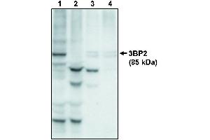 Detects 3BP2 protein by Western blot analysis. Detects a 85 kDa band in murine fibroblasts transfected with 3BP2. Optimal concentration should be evaluated by serial dilutions.