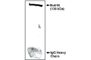 Antibody detects Bub1b in mitotic cells seperated from NIH/3T3 cells by IP/Westen blot analysis (1-10 μg/mL). Detects a 130 kDa band. Optimal concentration should be evaluated by serial dilutions.