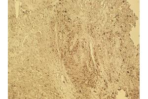 Detects human tenascin protein by Western blot at 1-5 μg/mL. Can also be used for immunohistochemistry on frozen and paraffin-embedded tissue sections and for immunoprecipitation. Optimal concentration should be evaluated by serial dilutions.