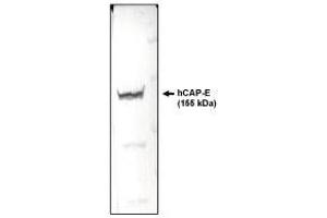- CAP-E, Structural maintenance of chromosomes protein 2, SMC-2,CAP-E and CAP-C (Chromosome Associated Protein-E & C) are also SMC (Structural Maintenance of Chromosome) family members that form a heterodimeric complex required for mitotic chromosome condensation to achieve proper segregation of genetic information during subsequent cell division. hCAP-C/hCAP-E is a component of a multiprotein complex called condensin that interacts with phosphorylation of Histone H3 resulting in the mitotic chromosome condensation. The distribution patterns of the two heterodimeric complexes in interphase nucleus indicate independent behaviour of the two complexes during cell cycle. These results suggest that the two distinct complexes are involved in different aspects of mitotic chromosome organization in human cells.