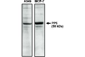 Rabbits were immunized with a Synthetic peptide derived from the human protein phosphatase 5 proteins