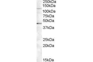 Western Blot: Approx. 125 kDa band observed in lysates of cell line Jurkat (calculated MW of 127 kDa according to NP_079511.1). Recommended concentration: 0.5-1.5 μg/mL. An additional band of unknown identity was also consistently observed at 45 kDa. Th