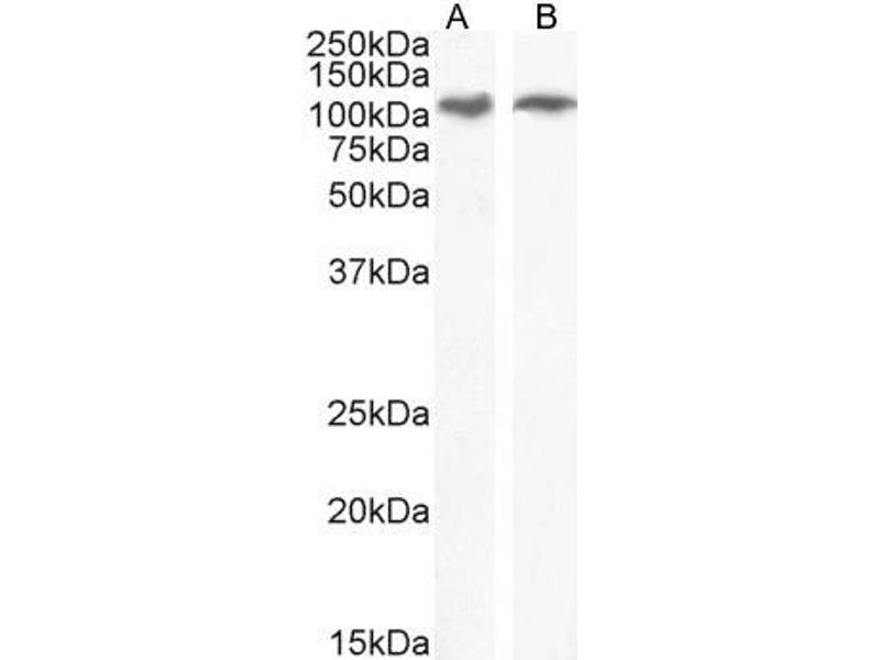 Western Blot: Approx 110 kDa band observed in Human Pancreas and Duodenum lysates (calculated MW of 110 kDa according to NP_001424.3). Recommended concentration: 0.1-0.3 μg/mL. Primary incubation 1 hour at room temperature.